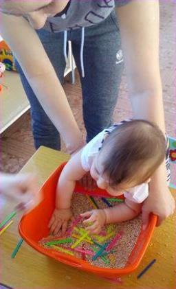 Смешайте крупу с разноцветными палочками и дети с удовольствием будут выполнять полезное упраж-нение для пальчиков. |